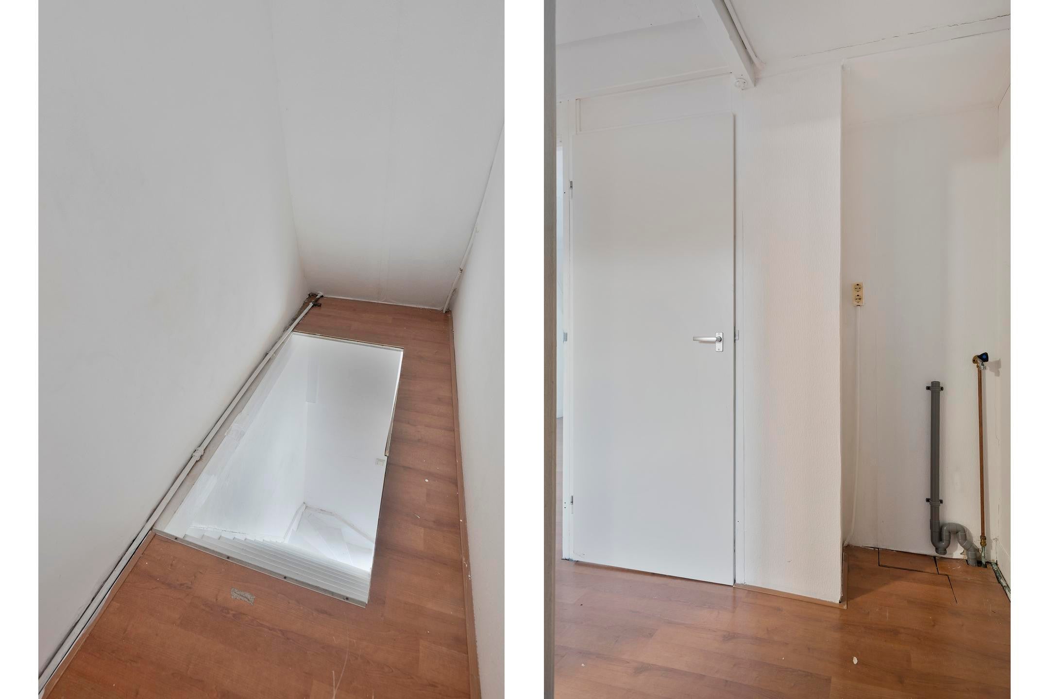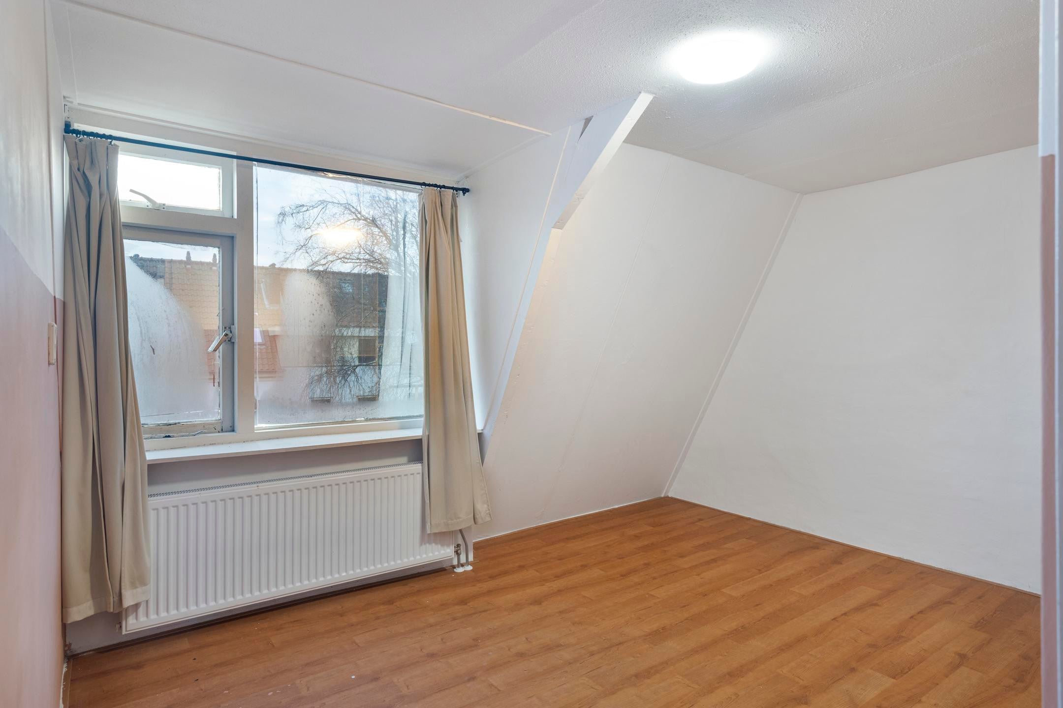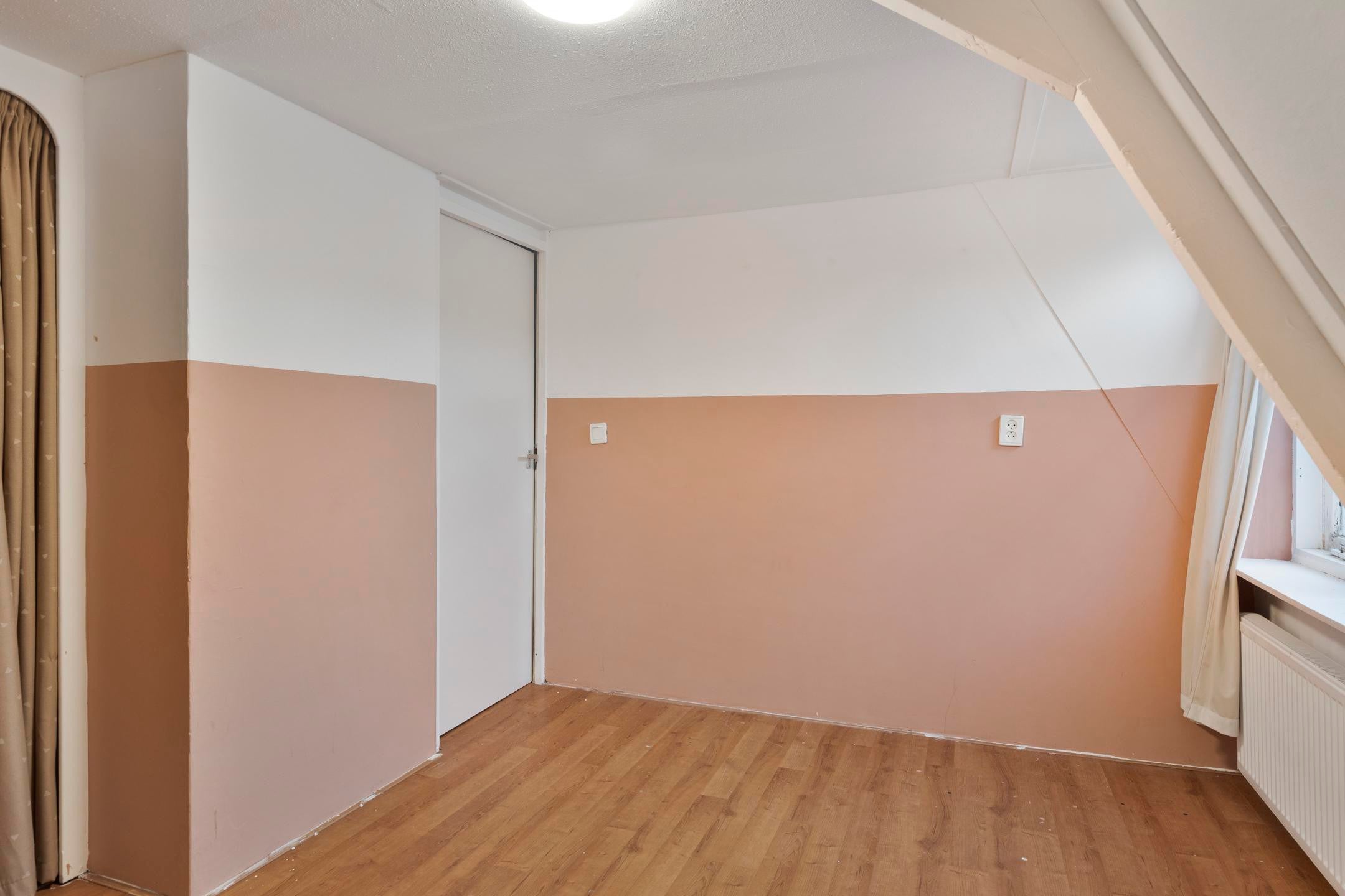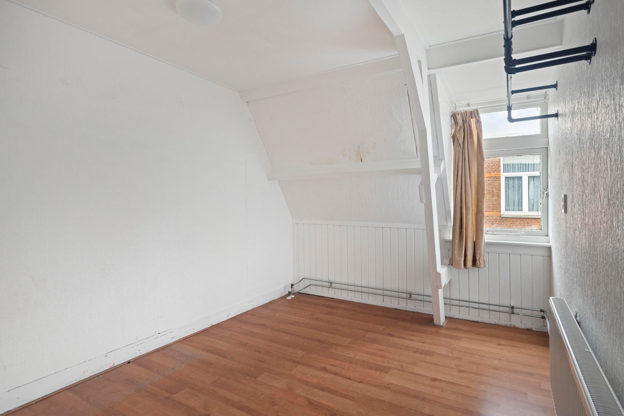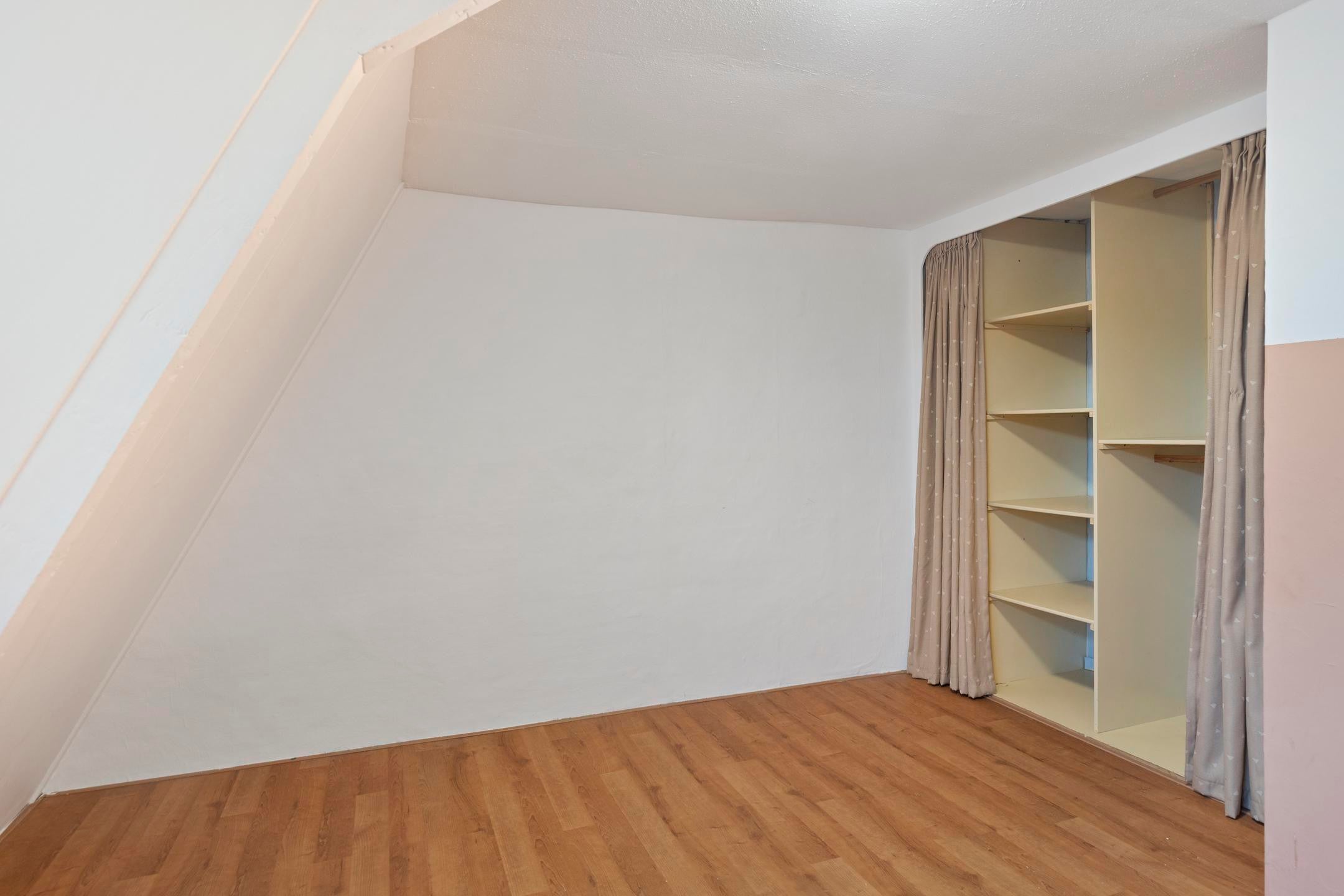 Overloop met toegang tot drie slaapkamers. De kamers zijn functioneel van formaat en kunnen worden gebruikt als slaap-, werk- of hobbykamer. Door de kapconstructie zijn er schuine wanden aanwezig.