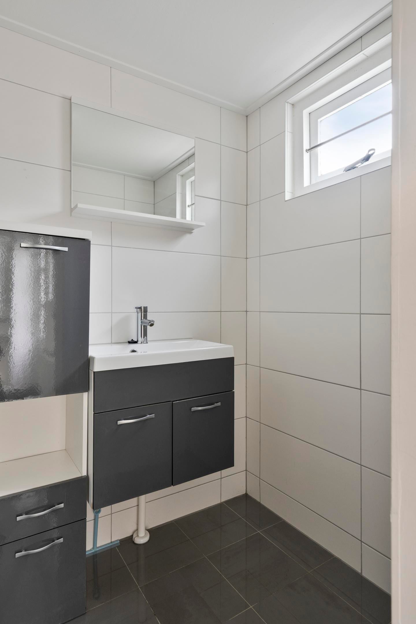 De badkamer is in 2022 vernieuwd en beschikt over een douche en wastafel.
